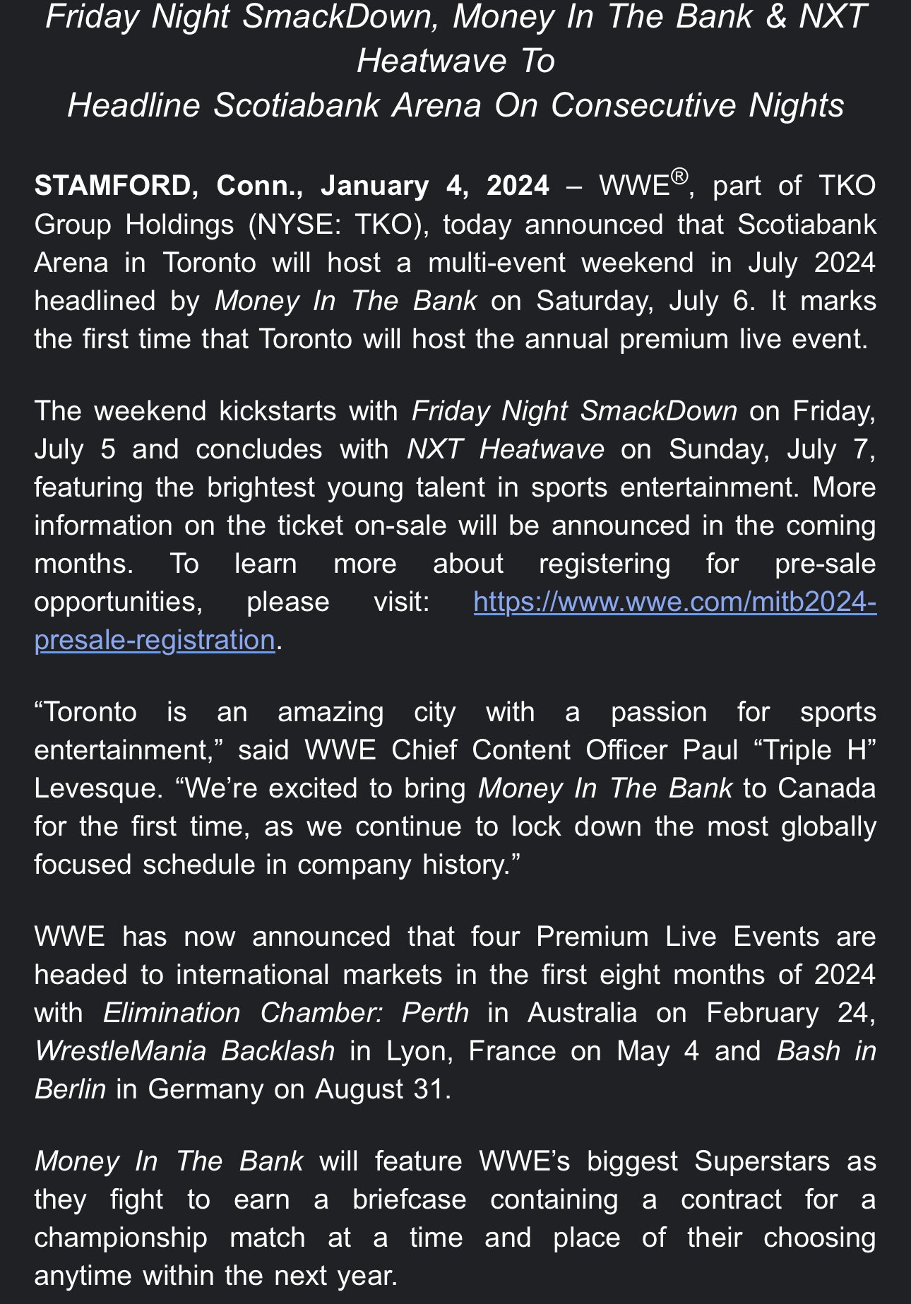 Source : www.wwe.comWWE on X: “TORONTO! Are you ready for a massive #MITB weekend this