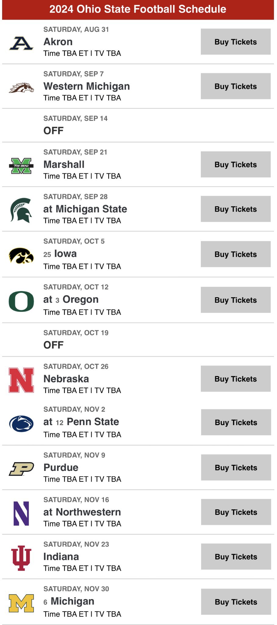 Source : bigten.org2024 25 Ohio State Buckeyes FB Schedule, Results, Recaps, Stats